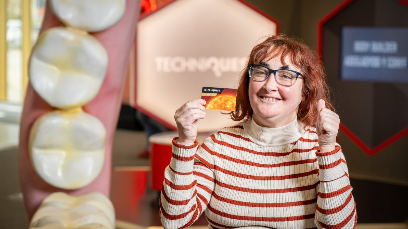 Llongyfarchiadau i’n cwsmer mwyaf ffyddlon, Annaliese Hart, sydd wedi derbyn Tocyn Premiwm am ddim fel diolch am ei hymweliadau rheolaidd â Techniquest: dros 1,000 yn y pum mlynedd diwethaf!